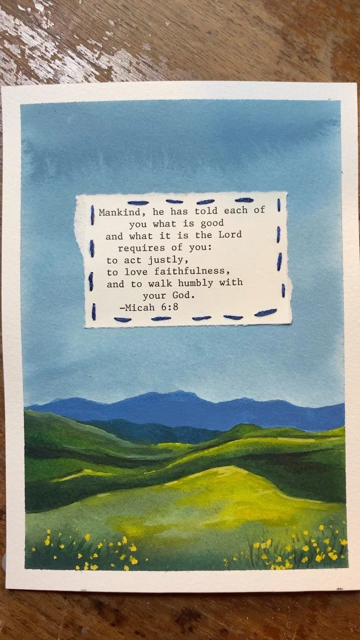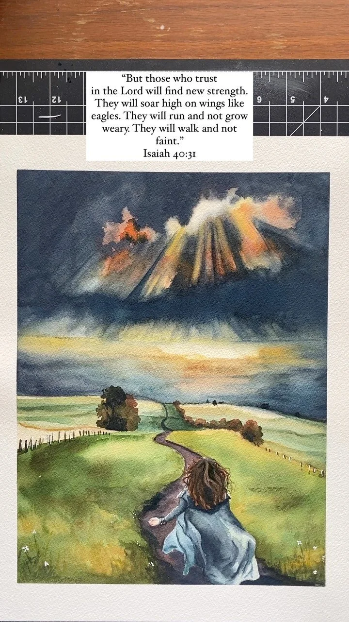 I recently had a woman reach out to me asking to commission this painting for her husband. She said his favorite verse is
